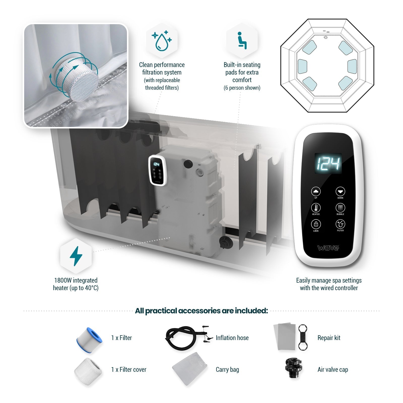 Elevate your outdoor relaxation with the Wave Aegean Inflatable Hot Tub, combining innovative features with superior comfort for the ultimate spa experience.