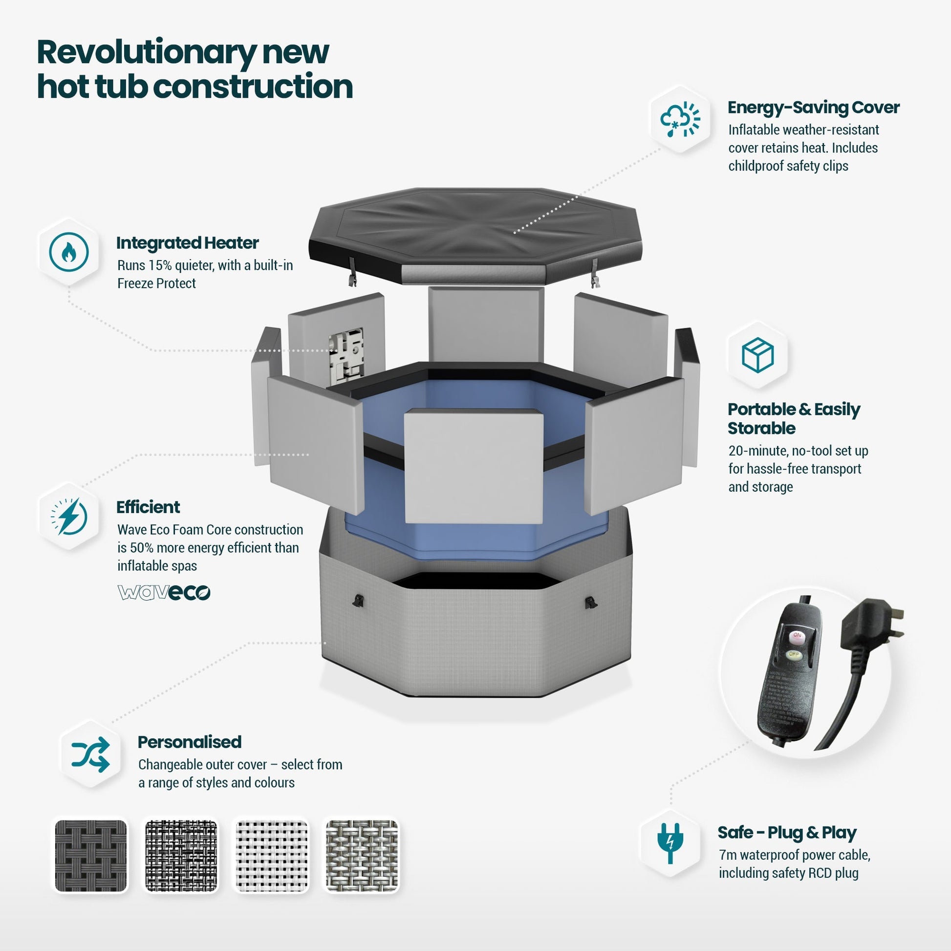 Como | 6-Person Eco Foam Hot Tub | Built-In Integrated Heater | UKCA
