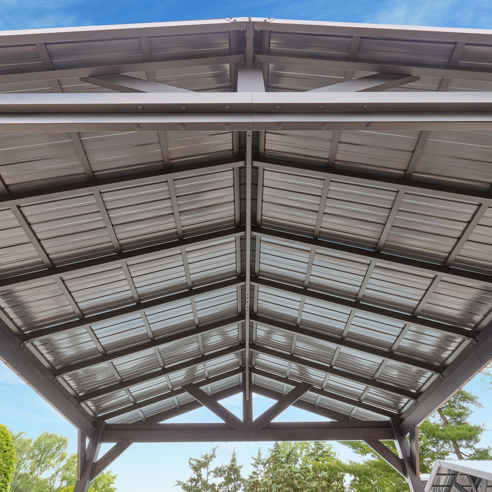Aluminum Roof: Sloped double-tier design for airflow and weather protection